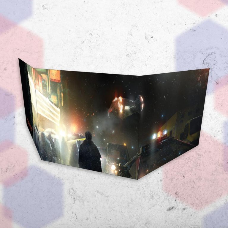 Questo schermo presenta all’esterno una splendida illustrazione di Martin Grip e all’interno una serie di utili tabelle e informazioni importanti, che tengono nascosti i piani del Game Runner agli occhi dei giocatori più smaliziati.