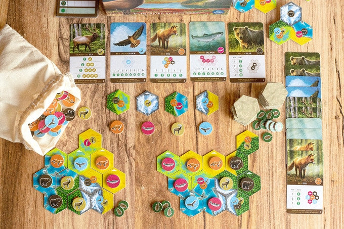Mentre organizzano la fauna in schemi di punteggio, i giocatori gareggeranno anche per creare le più grandi strisce contigue dei cinque diversi habitat: fiumi, zone umide, foreste, praterie e montagne. L’intento è di creare l’ecosistema più armonioso di Cascadia™.