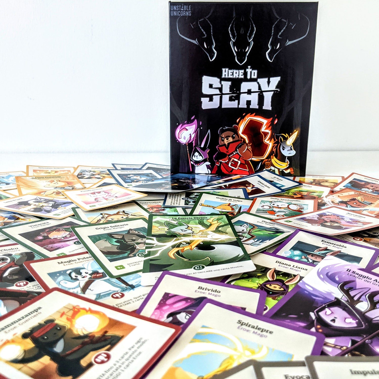 Here to Slay è un gioco di carte strategico fantasy dai creatori di Unstable Unicorns.