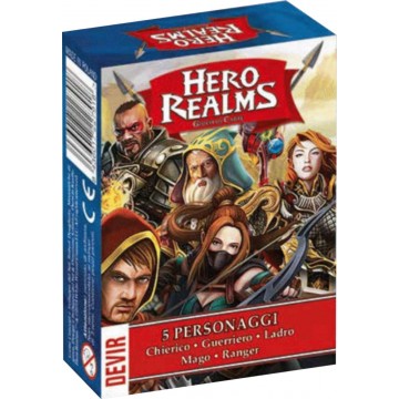 Questa confezione contiene 5 mazzi personaggio: Chierico, Guerriero, Ladro, Mago e Ranger. Ogni mazzo è composto da 15 carte. Un mazzo personaggio sostituisce il mazzo individuale del gioco di carte Hero Realms.