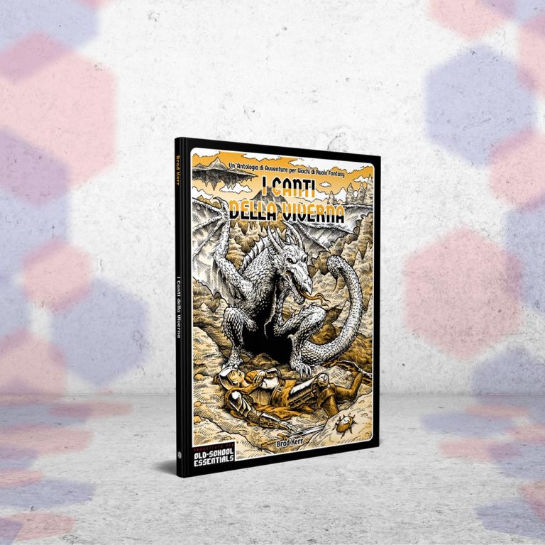 I Canti della Viverna è un’antologia di quattro avventure per Old-School Essentials, giocabili in una campagna in corso, come un unico sandbox o come one-shot, con regole opzionali e contenuti aggiuntivi per unirsi a gilde di avventurieri, visitare un villaggio pieno di bare nascoste o resuscitare con la nuova classe mektauro.
