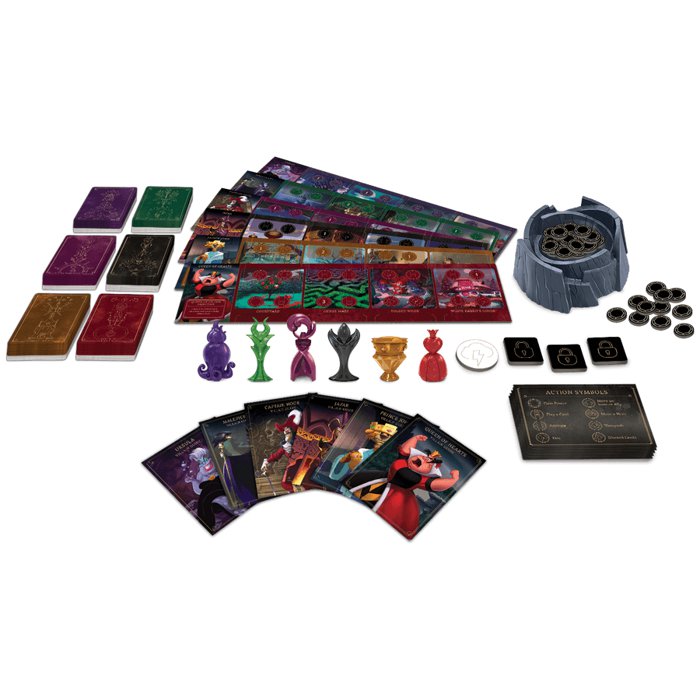 Grazie a Villainous avrete l'occasione di vestire i panni di uno di sei carismatici cattivi dei film a cartoni animati della Disney: il Principe Giovanni, Malefica, Ursula, Jafar, la Regina di Cuori o Capitan Uncino. Utilizzando il mazzo unico a cui ciascuno dei personaggi ha accesso, dovrete visitare una serie di luoghi presenti sulla vostra plancia che rappresentano situazioni presenti nei rispettivi film ed utilizzare le carte per ottenere una serie di piccole vittorie.